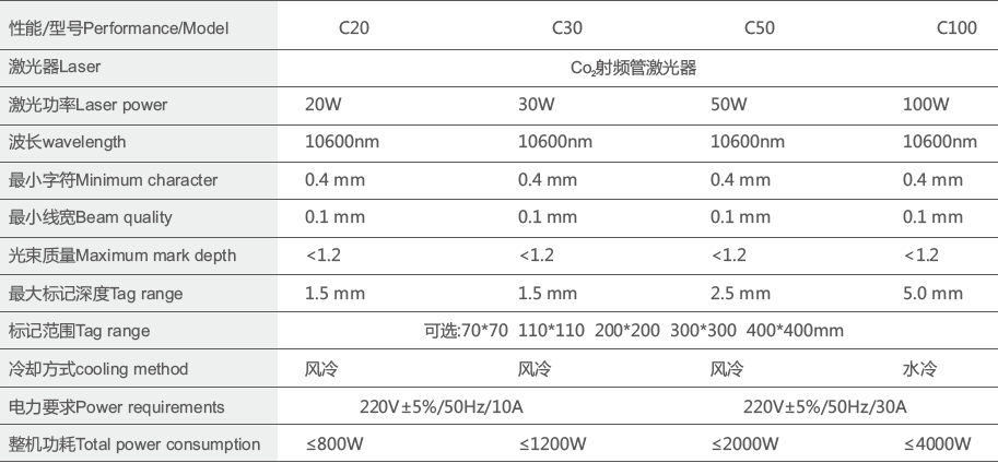 本機可選美國進口CO2射頻激光器或國產(chǎn)CO2射頻激光器,出光穩(wěn)定、壽命更長;