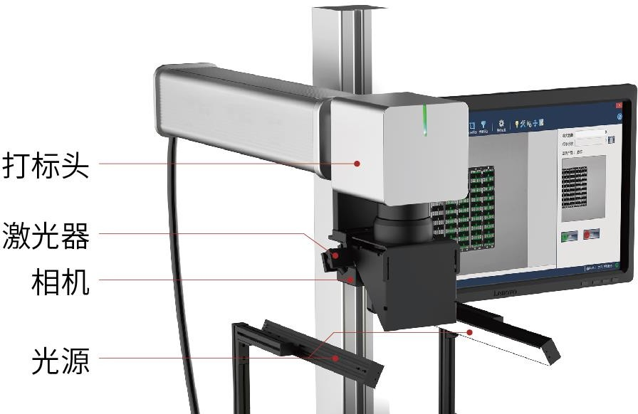 激光打標視覺定位系統(tǒng)主要是針對批量不規(guī)則打標中夾具設(shè)計制造困難導(dǎo)致的供料難、定位差、速度慢的問題,其通過采用外置攝像頭實時拍攝,抓取特征點的方式識別打標物,并協(xié)同控制運動系統(tǒng)和激光打標系統(tǒng),實現(xiàn)自動打標。